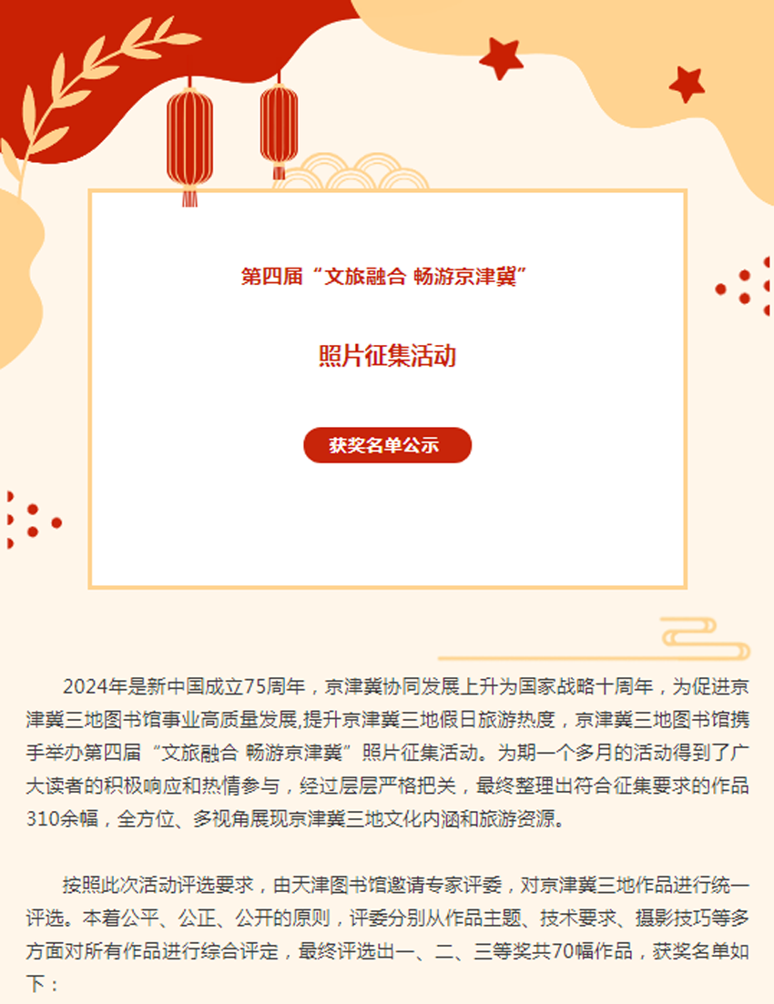 领奖通知丨第四届“文旅融合 畅游京津冀”照片征集活动获奖名单公示