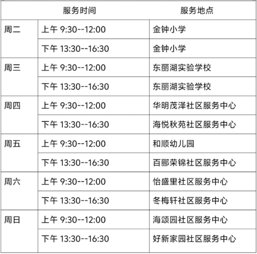 4月15日—4月20日东丽区图书馆流动服务车服务时间地点公布如下。社区、单位需要服务车上门服务请与杜俊老师联系,联系电话:18522291388。