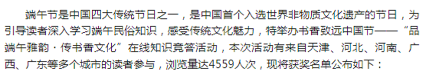 【领奖通知】| 书香致远中国节——“品端午雅韵·传书香文化”端午节主题在线知识竞赛获奖名单公示