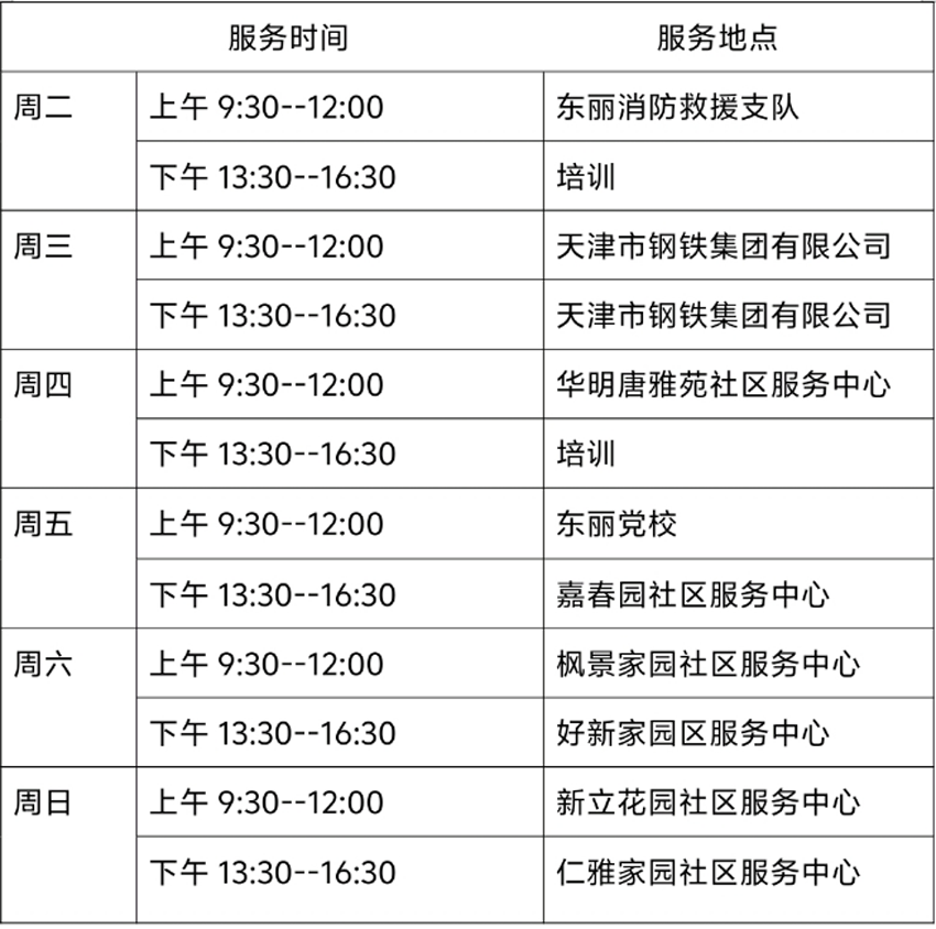 9月9日—9月14日东丽区图书馆流动服务车服务时间地点公布如下。社区、单位需要服务车上门服务请与杜俊老师联系,联系电话:18522291388。