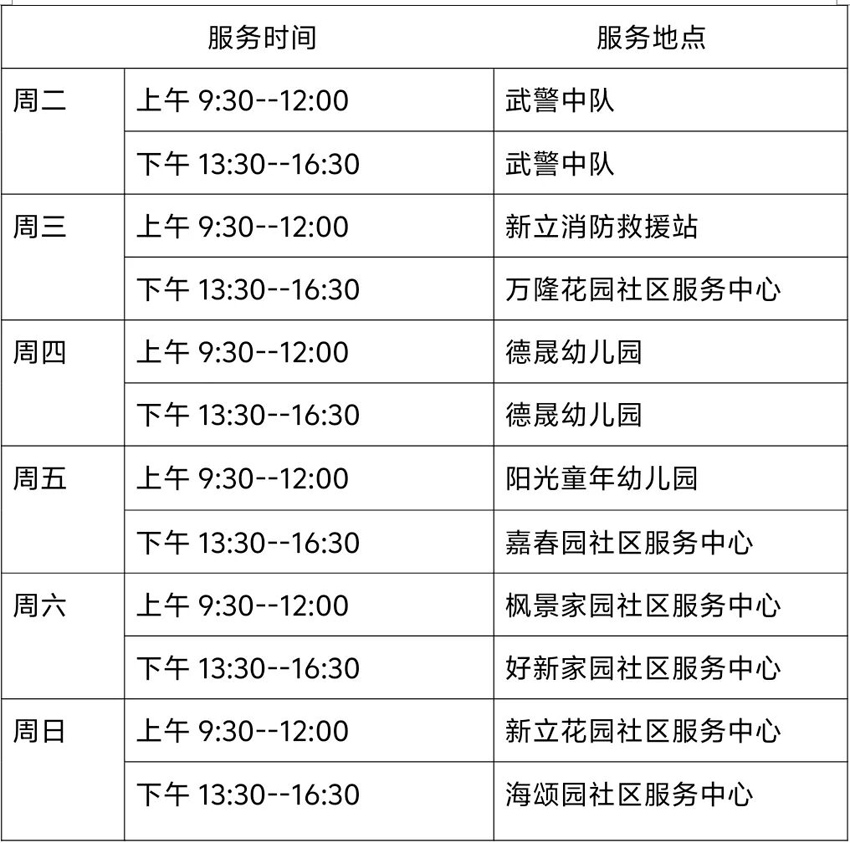 10月7日—10月12日东丽区图书馆流动服务车服务时间地点公布如下。社区、单位需要服务车上门服务请与杜俊老师联系,联系电话:18522291388。