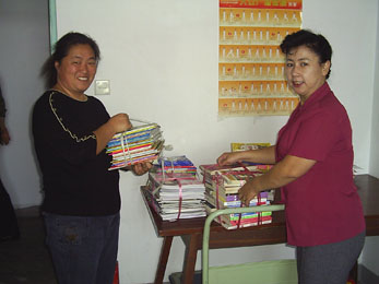 为拓宽图书馆的服务范围,加强对社区图书馆扶植和帮助,东丽区图书馆为振华里居委会社区图书室捐赠图书200余册。图为东丽图书馆为振华里社区图书室赠书。