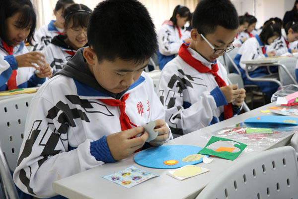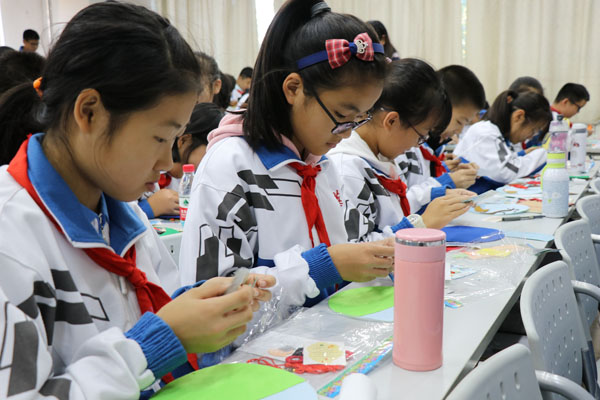 10月29日,东丽区图书馆“书香雅韵小课堂”走进耀华滨海学校,组织开展了“中华辞赋,千载流芳”活动。我们首先为到场的孩子们讲解了诗词的体裁及内涵,并通过诗词探究的形式现场解读古诗词的内涵等知识。随后,孩子们领取材料包,现场制作诗词不织布作品。