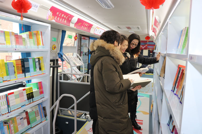 1月22日上午,东丽区图书馆基层服务点流动服务车载着丰富的文献资源亮相丰年街民和巷,车上采用无线上网技术实现与天津图书馆、东丽区图书馆、“阅东方”24小时城市书房的数据互联互通,达到四级通借通还。
