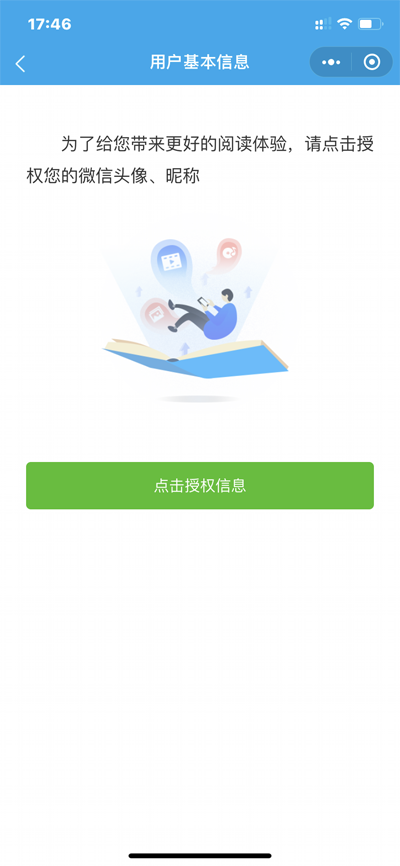 步骤3、点击最下方“我的”,办理访问资源需授权信息和手机号码认证,办理虚拟电子阅读证。授权成功即可访问资源。
