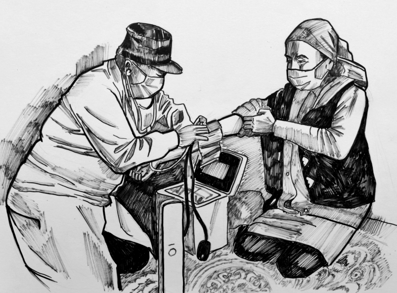 临近春季转场,51岁的新疆伊犁哈萨克自治州昭苏县阿合牙孜沟牧业医院院长杰恩斯·阿里别克往“冬窝子”跑得更勤了——牧民吴仁汉·道提汗年纪大还有低血压,上路有危险;春季接羔育幼很关键,得叮嘱牧民做好防疫... ... 新冠肺炎疫情发生以来,杰恩斯和同事们每日骑马奔波,宣传防控知识、检测记录体温。