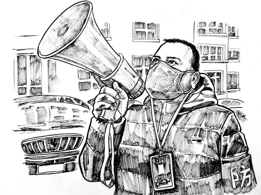 伊犁哈萨克自治州伊宁市萨依布依街道丽园社区干部手举喇叭在居民区宣传疫情防控知识。在天山南北的战“疫”一线,有着这样一群不畏严寒、不惧风险,奋战在小区巷弄里、楼宇间、出入口的社区工作者,他们用满腔赤诚守护着万家安康。