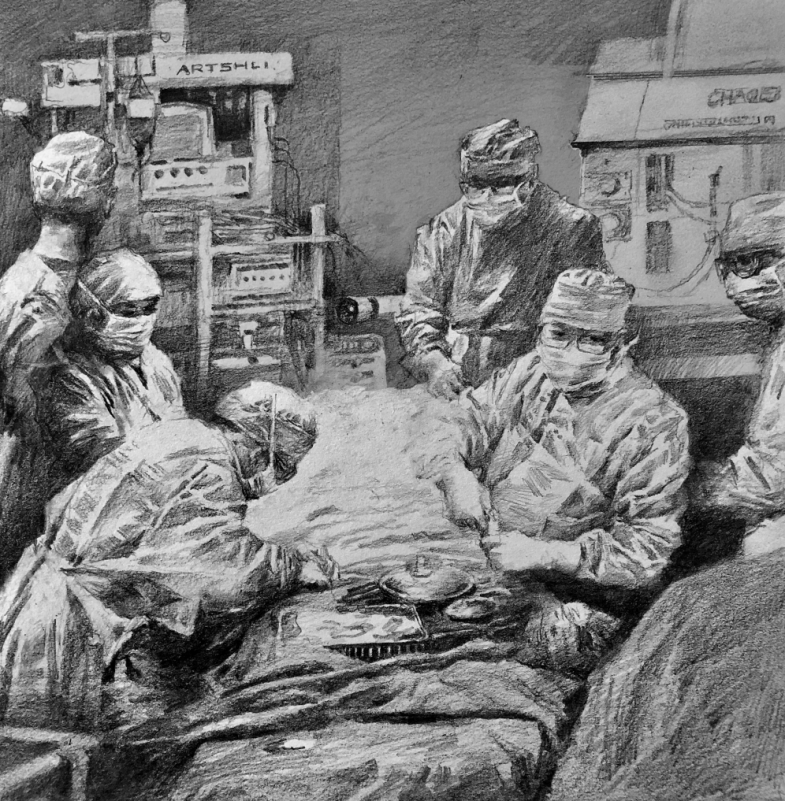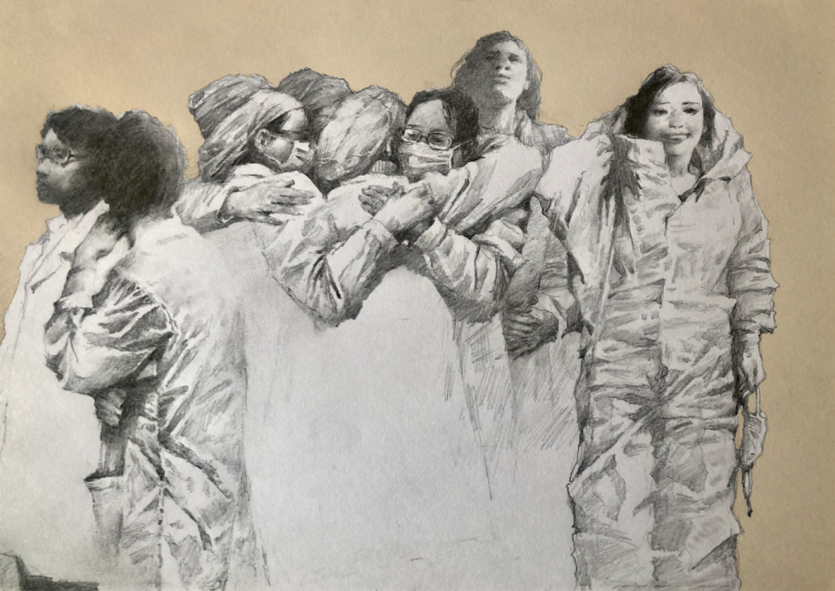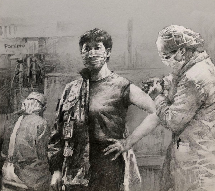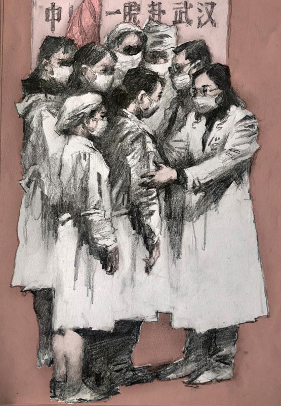 自文艺战“疫”打响以来,广州市美协主席汪晓曙就以笔为援,创作了《战疫魔》《逆行者》两组鲜活的作品。近日,汪晓曙又完成了其“战疫三部曲”的第三部——《天使颂》。尤为特别的是,这组作品结合由其夫人、星海音乐学院音乐教育学院副院长皮晓彩倾情演唱,由星海音乐学院音乐教育学院17级学生温雅楠作词作曲的《逆行天使》,形成了视听效果极佳的音画作品。逆行大爱、伉俪情深、师生厚谊与创新精神,融会贯通于这样一件音画作品中,也让人充分感受到广州文艺界携手共进、合力战“疫”的家国情怀。