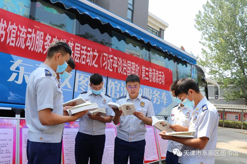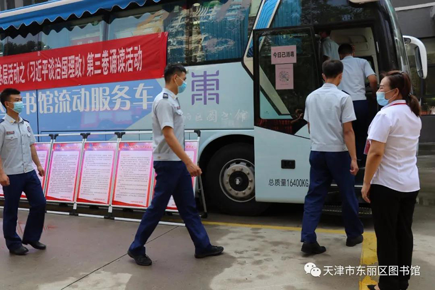 8月18日上午,东丽区图书馆流动图书车开进东丽区消防救援支队华明中队,作为流动图书车送书进基层的第一站,在为消防指战员送上精神食粮的同时,拉开了流动图书车进基层的大幕。
