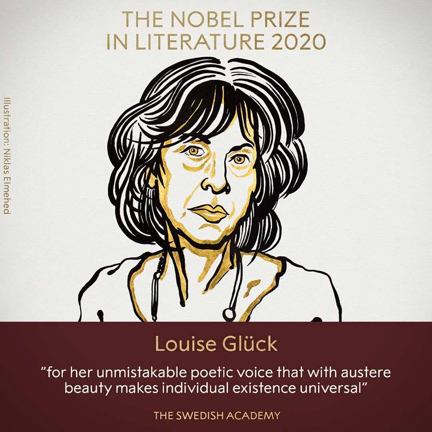 10月8日,瑞典当地时间13:00(北京时间19:00),瑞典文学院宣布将2020年诺贝尔文学奖授予美国诗人露易丝·格丽克(Louise Glück),获奖理由是:因她那无可辩驳的诗意般的声音,用朴素的美使个人的存在变得普通。