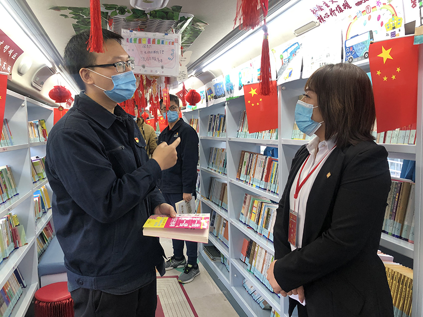 2月9日上午,东丽区图书馆流动服务车来到华明国网电力公司,为就地过年的企业员工送图书送温暖。书车上不仅有优质的图书资源,还开展了丰富多彩的阅读推广活动,以此丰富就地过年企业员工的精神文化生活,让他们过一个文化气息浓厚的春节。