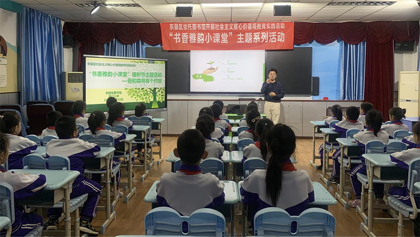 东丽区图书馆“书香雅韵小课堂”携手津门小学开展植树节主题活动
