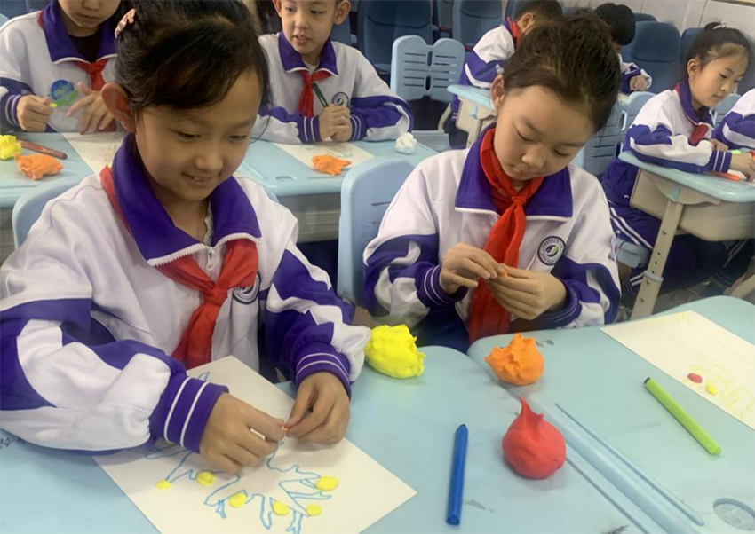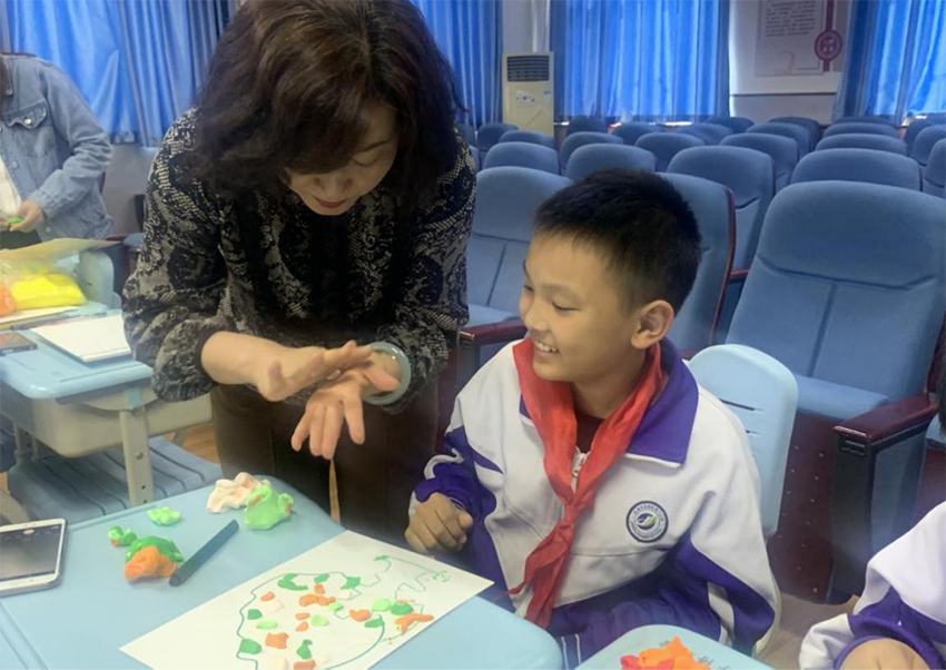 《礼记》有言:孟春之月,盛德在木。在手工环节,志愿者老师带领同学们制作四季之树,细心为大家解读植物种类以及粘贴树的制作流程。同学们兴趣盎然创作精致的粘贴树,在动手制作中,学生们进一步接触自然、了解植物、体会植物生长的过程。一个个精巧的粘贴树凝聚了孩子们对田园和自然的向往,展现了孩子们的创新精神。