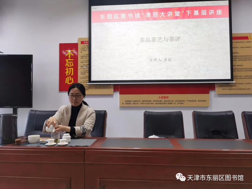 为深化东丽文明城区良好氛围,弘扬中国传统优秀文化,倡导文化栖心的生活方式,3月16日下午,东丽区图书馆“津丽大讲堂”邀请到天津商业大学教师、高级茶艺师李莉为广大听众带来了《茶品茶艺与茶评》系列讲座。