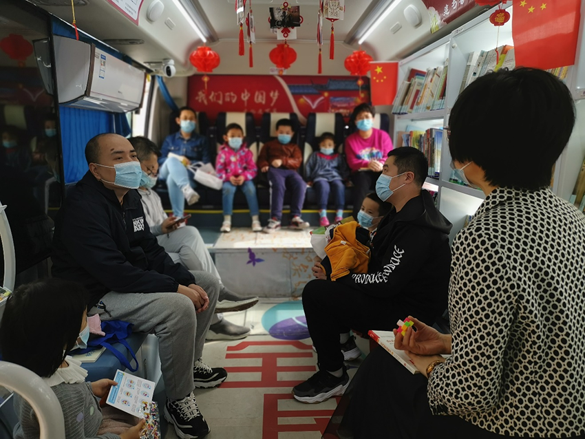 3月27日,刘容禾老师在东丽图书馆流动服务车上,和大家一起分享了《由内而外的教养》。