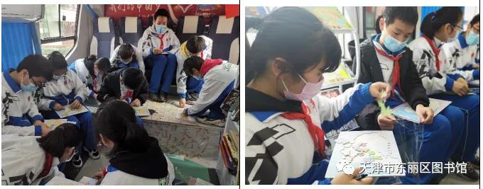 东丽区图书馆流动服务车阅读推广系列活动丰富了同学们的课余生活,让同学们爱上读书,学会团队合作,让全民阅读书香满校园!