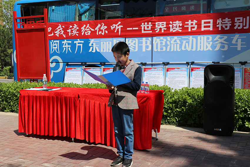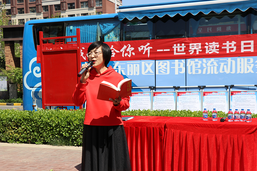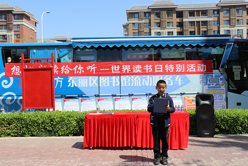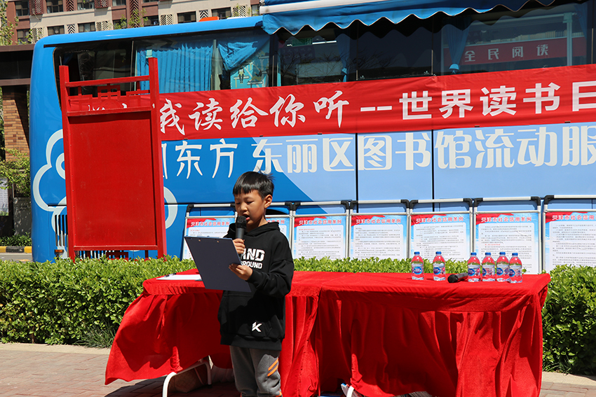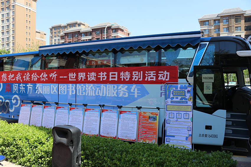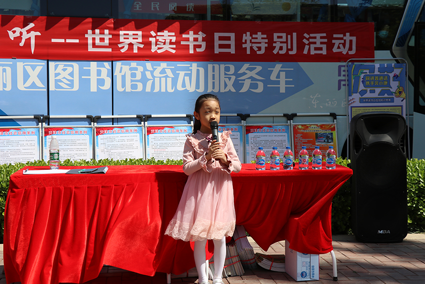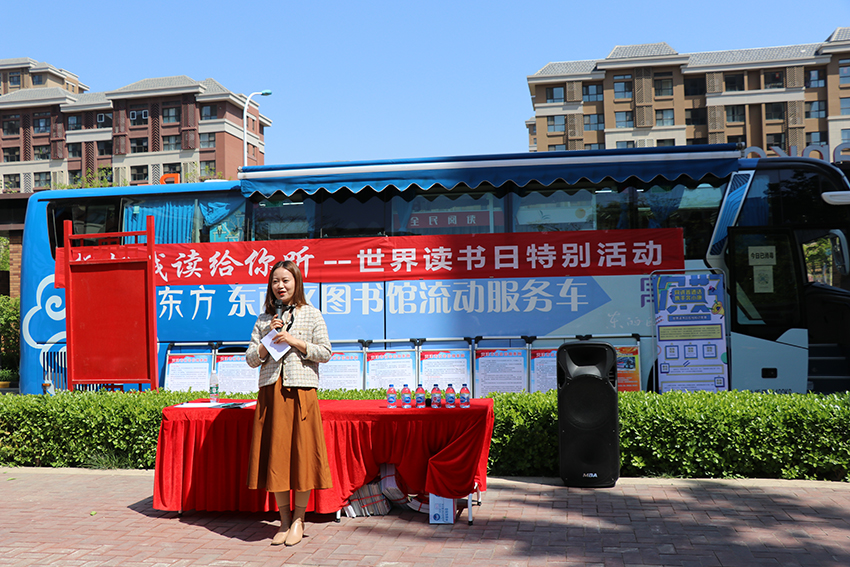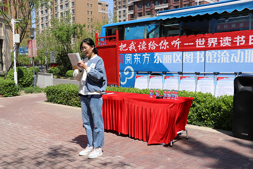 在春风花草香的四月,在第26个世界读书日即将到来之际,4月18日上午,东丽区图书馆流动图书车开进金域华府社区,想把我读给你听——世界读书日特别活动在这里举行。