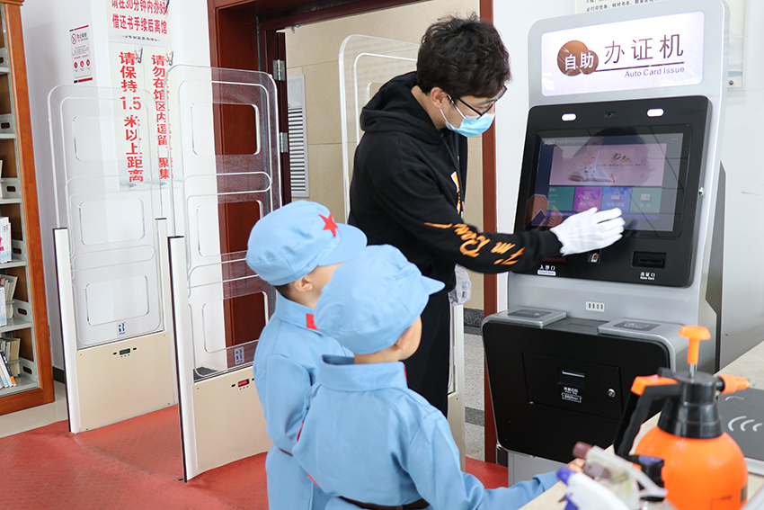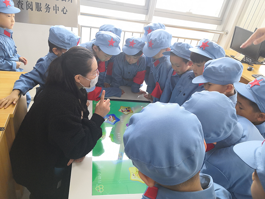 通借通还室的老师给孩子们介绍了图书归位和自助办证机的使用,电子阅览室的老师带孩子们体验了触摸桌系统平台。