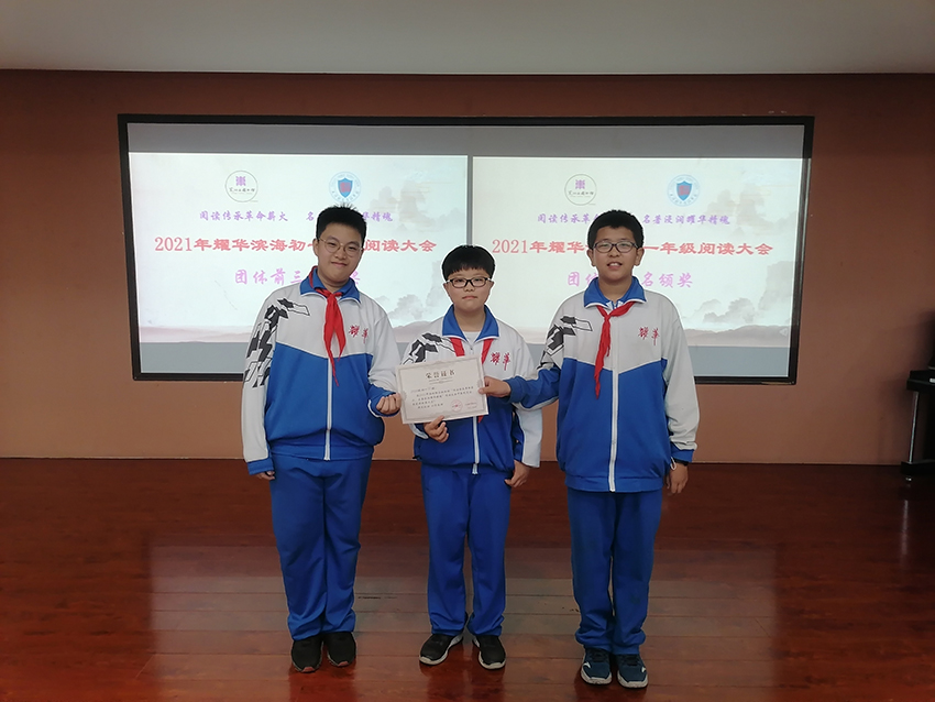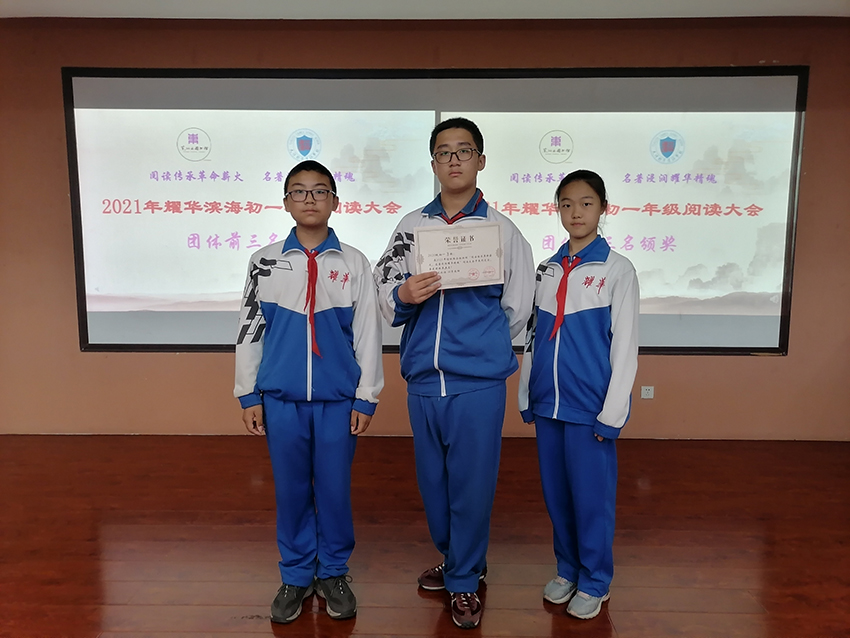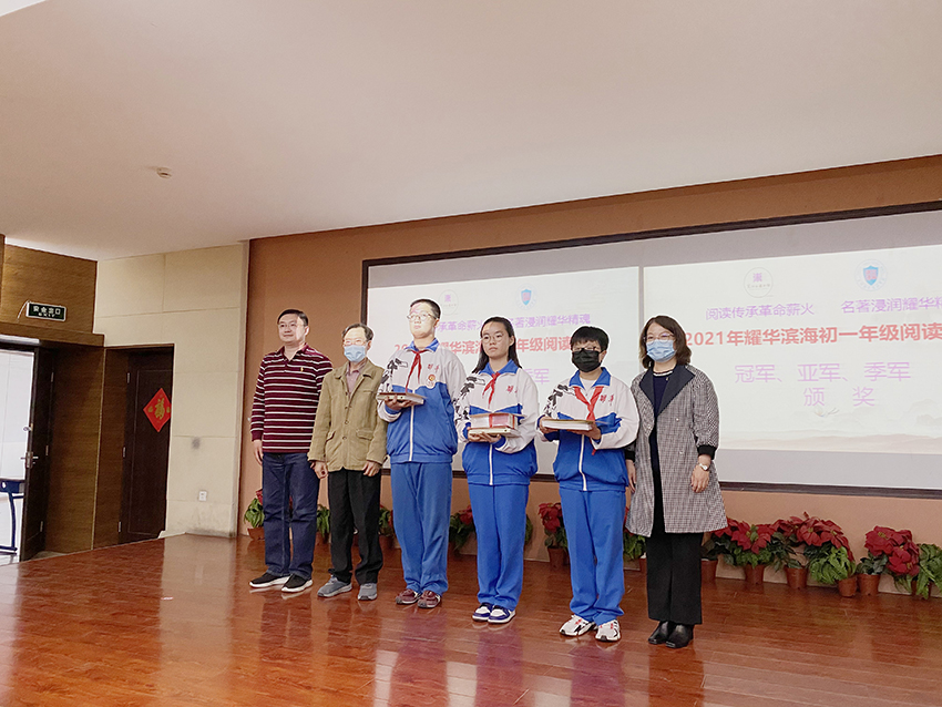 为深入贯彻落实四史学习精神,迎接中国共产党成立100周年,在世界读书日之际,东丽区图书馆与耀华滨海学校联合主办“阅读传承革命薪火 名著浸润耀华精魂”阅读大会活动,初一年级组、语文教研组和学校图书馆共同承办。