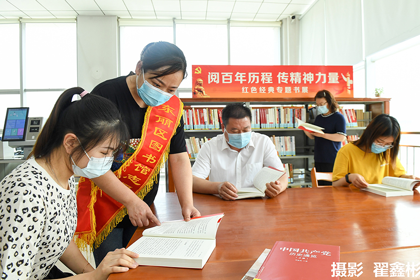 为进一步发挥图书馆的特色资源优势,引导广大读者阅读红色经典书籍,重温红色记忆,进一步了解党的历史,从党史中汲取前进智慧和力量。在中国共产党百年华诞来临之际,东丽区图书馆集中采集《领袖与开国大典》《再走长征路》《大国追梦》等红色经典书籍3000册,这些书籍提炼和凝聚了中国共产党人的革命精神,揭示了‘没有共产党就没有新中国’的历史,是开展红色教育的最好教材。上述图书被分别调拨到街道分馆、流动服务车及本馆阵地投入流通。