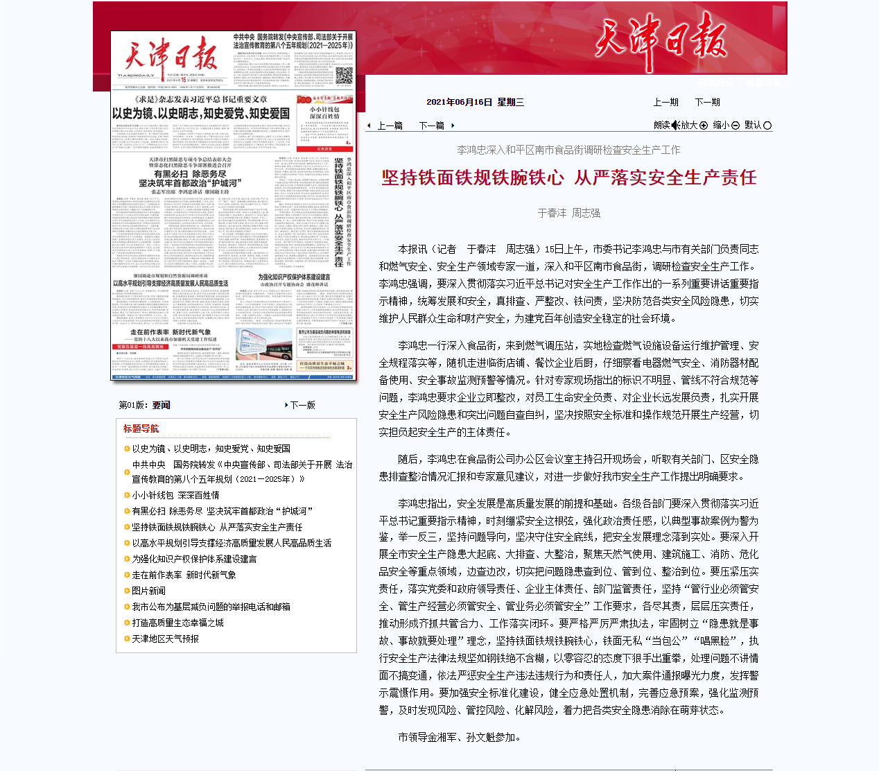 李鸿忠深入和平区南市食品街调研检查安全生产工作