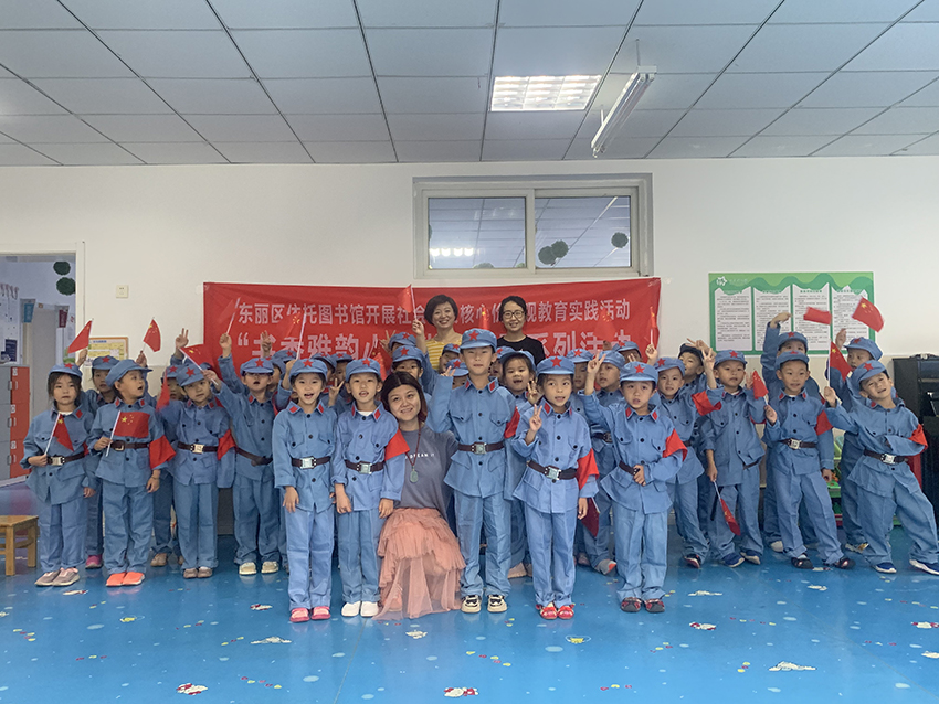 为进一步提高少年儿童爱党爱国精神,激发他们对祖国、对人民、对党的深厚感情,增强红色经典传承意识,继承发扬党的光荣传统,6月16日,东丽区图书馆“书香雅韵小课堂”——“庆,百年华诞·弘,爱国精神”同唱一首红歌主题活动走进丰年幼儿园,和小朋友们在歌声中追寻红色记忆。