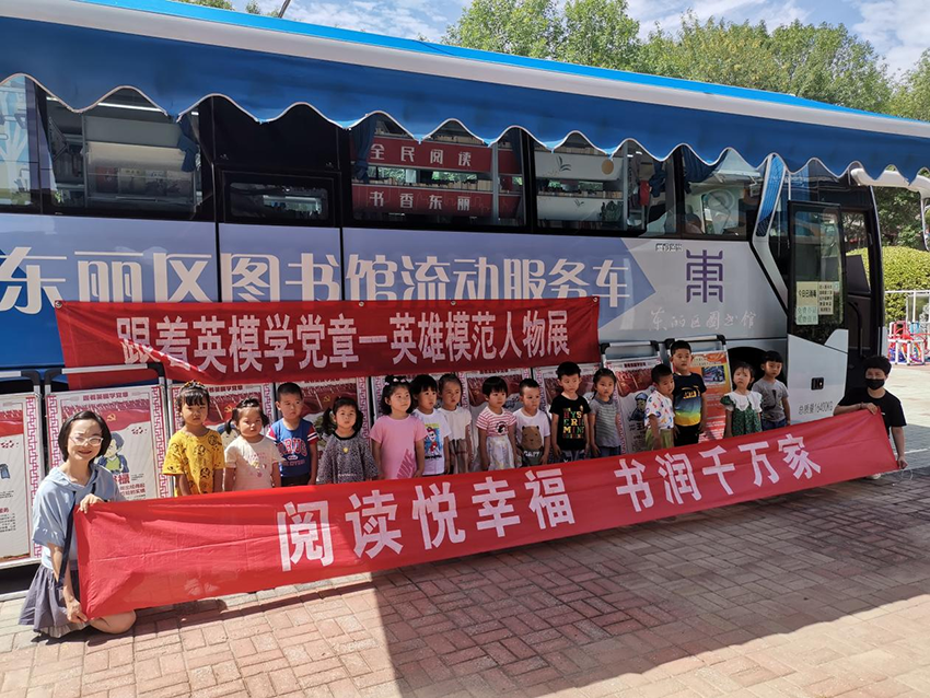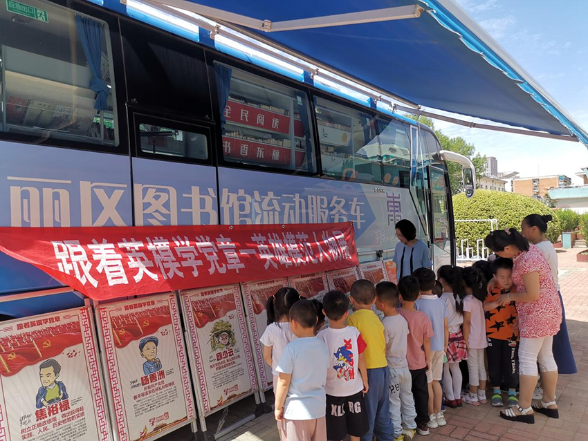 6月18日,东丽区图书馆流动图书车开进第二幼儿园,本次活动的主题是:小小红心,永向党。