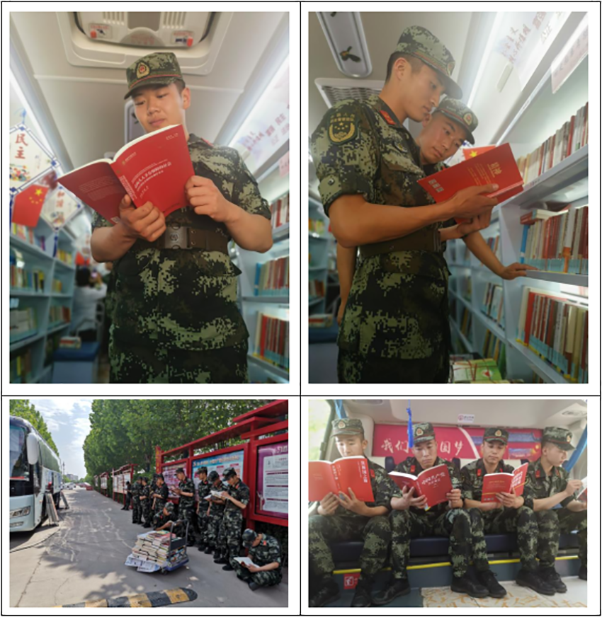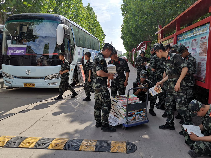 6月16日,东丽区图书馆流动服务车开进机场警卫连。