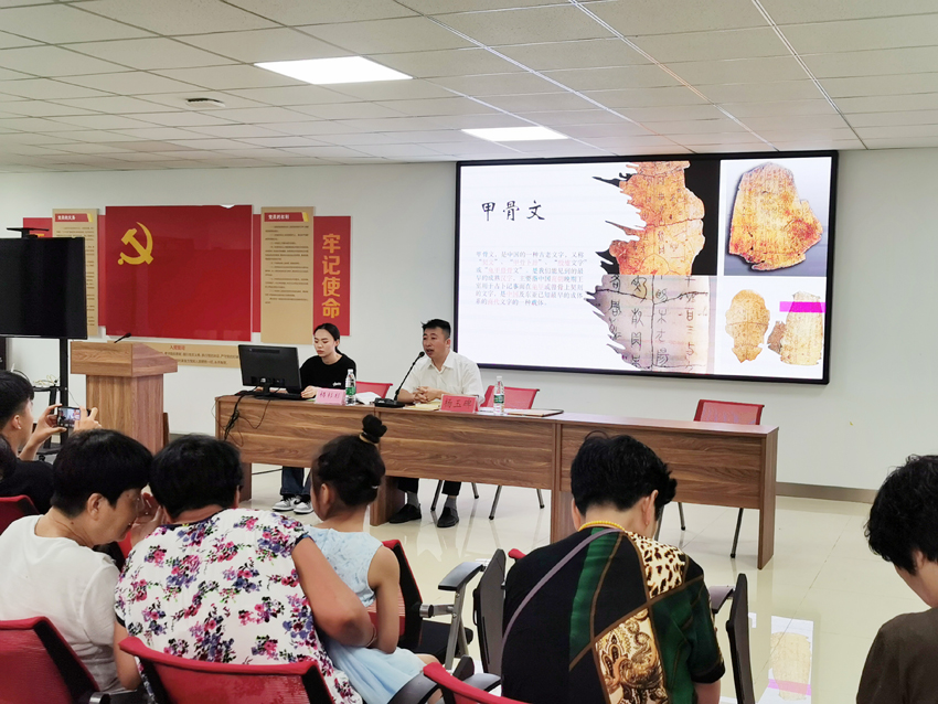 汉字是世界上使用时间最久、空间最广、人数最多的文字之一,汉字的创制和应用不仅推进了中华文化的发展,还对世界文化的发展产生了深远的影响。为提升广大读者精神文明素养,培养读者对汉字及书法的热爱。东丽区图书馆于7月23日在金桥街道景云轩党群服务中心举办了一场与汉字有关的“津丽大讲堂”文化公益讲座。