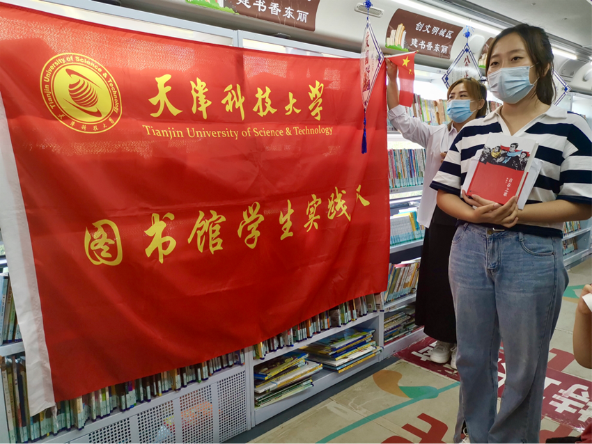 本次活动还特别邀请了天津科技大学图书馆学生实践队的同学们一起,向基层群众和青少年朋友们推广党史经典图书,号召基层群众听党话、感党恩、跟党走。
