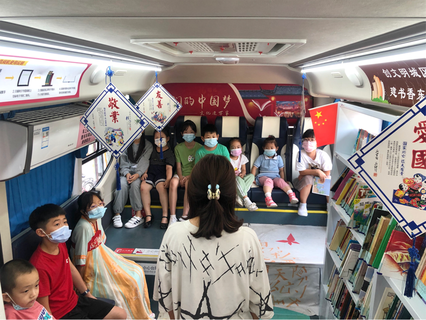 近日,东丽区图书馆流动服务车开进景文轩社区,举办阅读分享活动,本期主题为:《百年潮起共读史,青春建功新时代》。