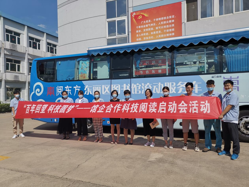 2021年8月25日,东丽区图书馆流动服务车开进津信公司。成功举办了“百年回望,科技圆梦”馆企合作科技阅读读书启动会。