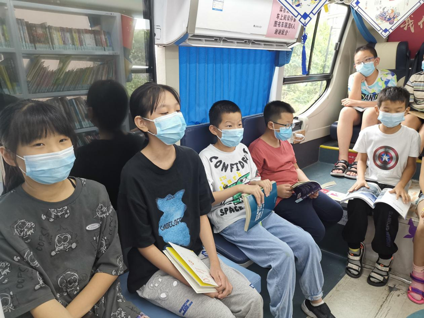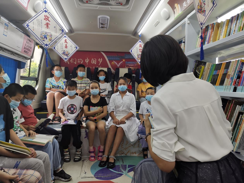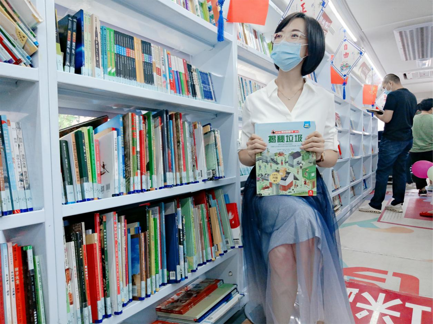 在流动服务车上,刘容禾老师和小读者们一起分享了图书《解密垃圾分类》,为小读者们科普垃圾分类知识。