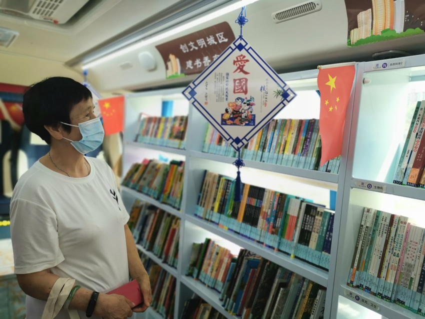 9月10日,东丽区图书馆流动图书车开进新立街道举办社会主义核心价值观主题线下活动。