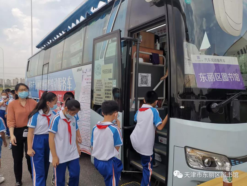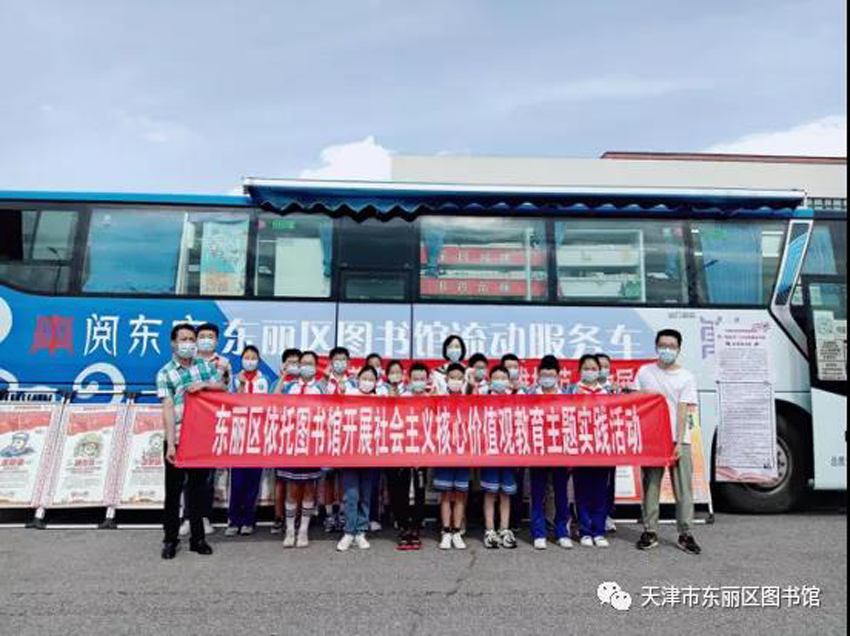 近日,东丽区图书馆流动服务车开到李明庄小学,开展了全民阅读学习“社会主义核心价值观”主题教育活动。