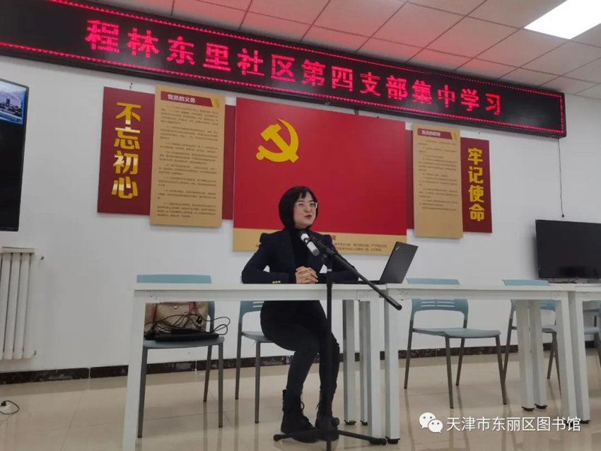 10月28日,东丽区图书馆流动服务车开进程林东里社区,在程林东里的党群中心,开展“学党史党章”之十大元帅朱德的主题活动。