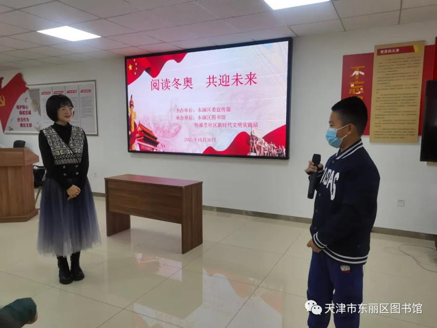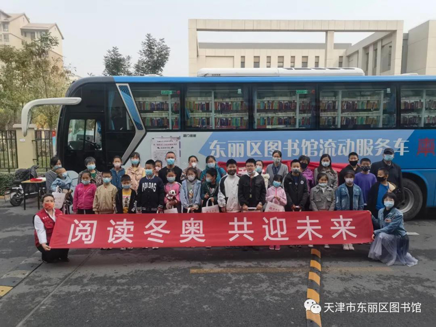 10月30日,东丽区图书馆流动服务车开进怡盛里社区,开展“阅读冬奥,共迎未来”主题活动。