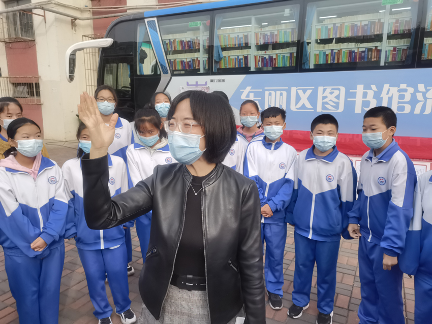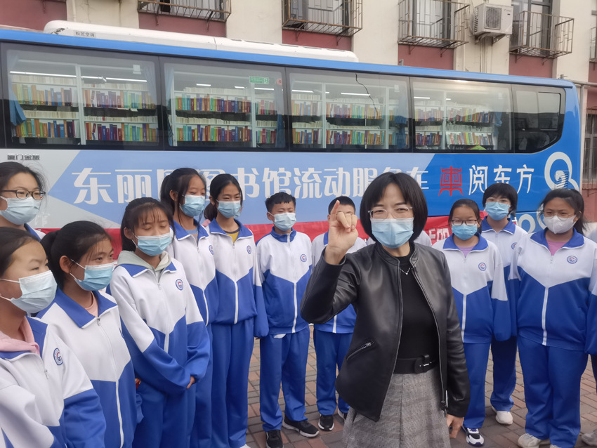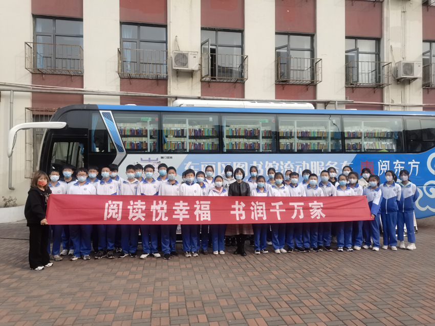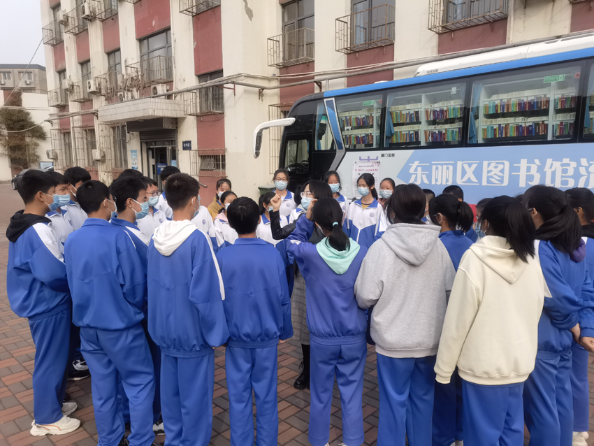 东丽区图书馆流动服务车在钢管中学开展阅读推广活动