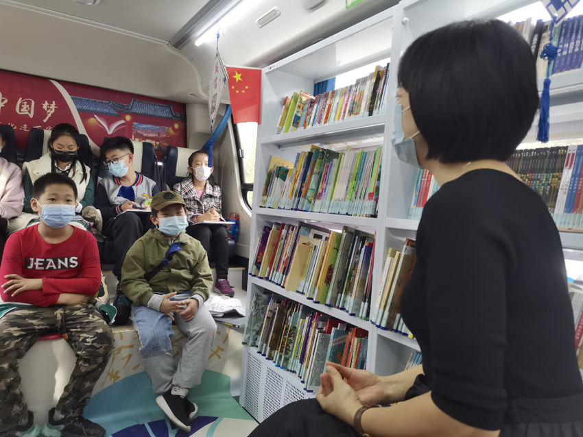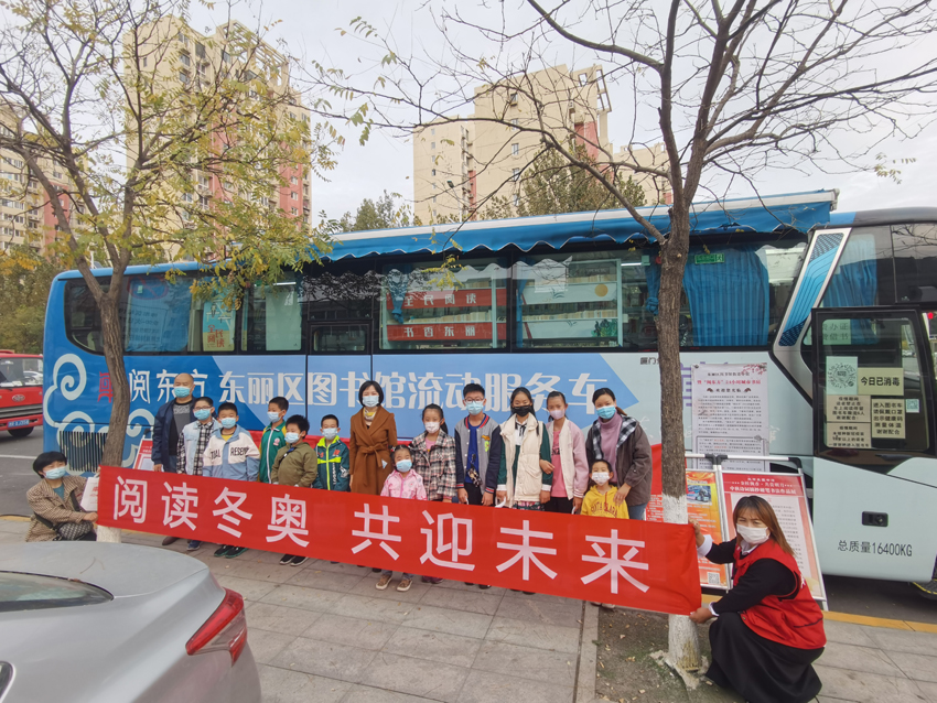 11月6日,东丽区图书馆流动服务车开进东城家园社区,开展“阅读冬奥,共迎未来”主题之奥林匹克的神话主题活动。