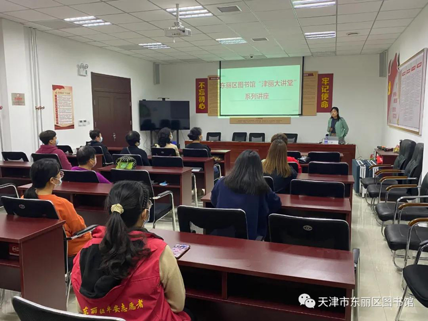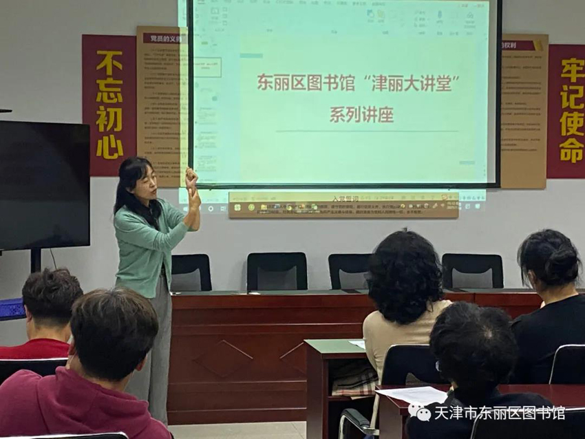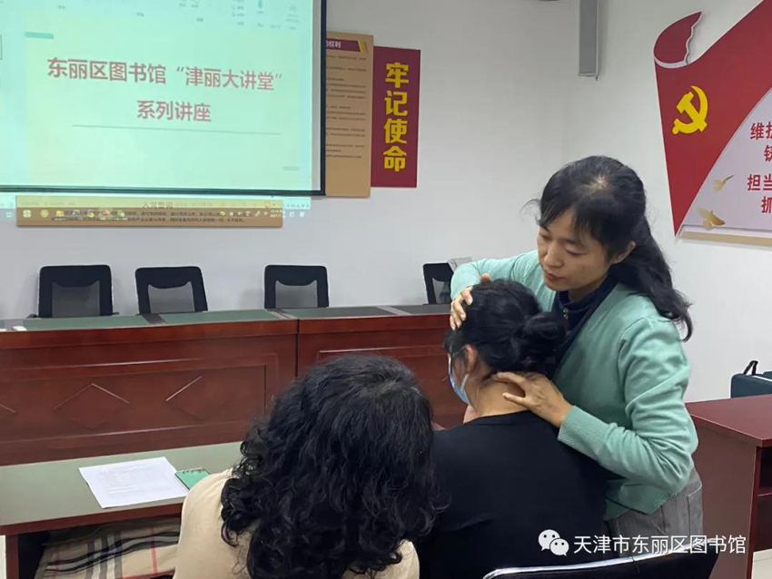 为提高居民的健康意识和自我保健能力,普及健康养生知识,传播健康理念,预防一些因季节转换引起的疾病,东丽区图书馆邀请天津中医药大学副教授刘洋走进轩和里社区党群服务中心,为大家开展以“提高冬季自我保健意识做健康的主人”为主题的“津丽大讲堂”公益文化讲座。