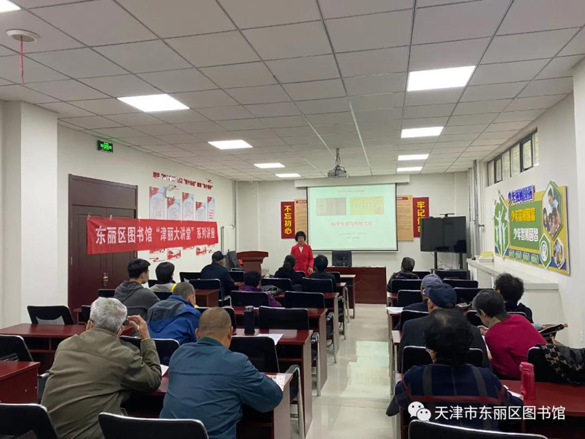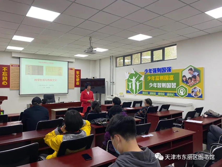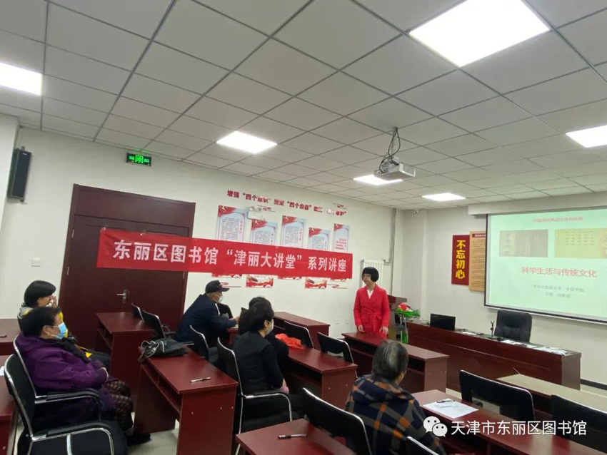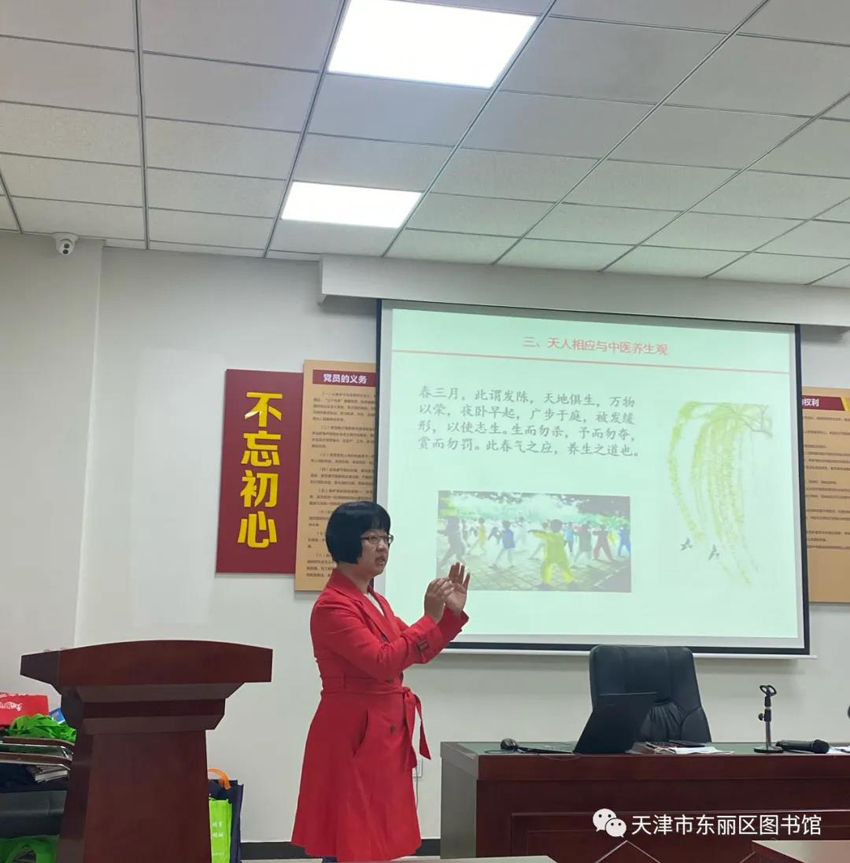 近日东丽区图书馆来到瑞和里社区党群服务中心,并邀请了天津中医药大学中医学院副教授王蕾为群众举办以“科学生活与传统文化”为主题的“津丽大讲堂”文化公益讲座。