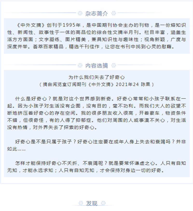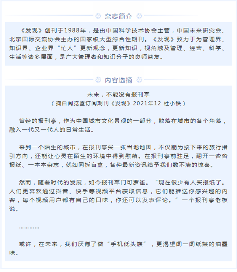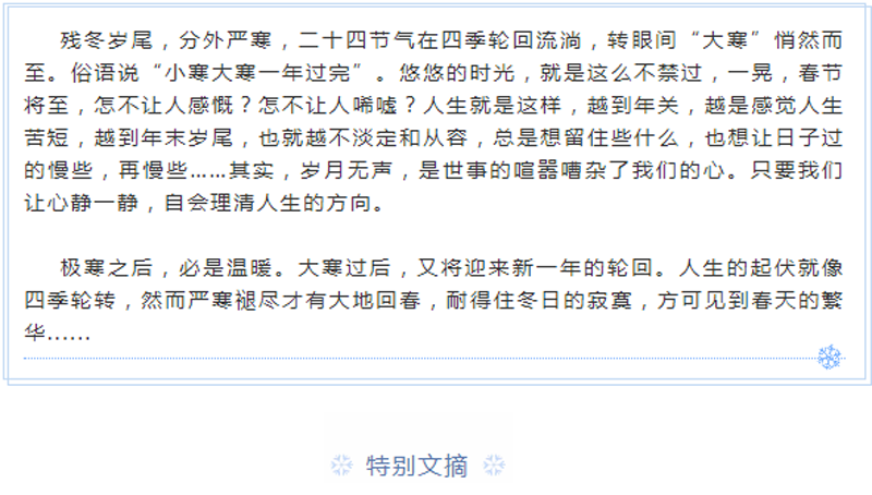品读·精品期刊推介第一期——“熬过”寒冬 邂逅温暖