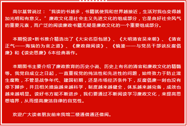 “悦读·新书推介”2022年第1期——读好书,存两袖清风正