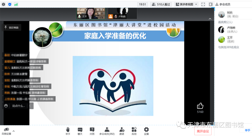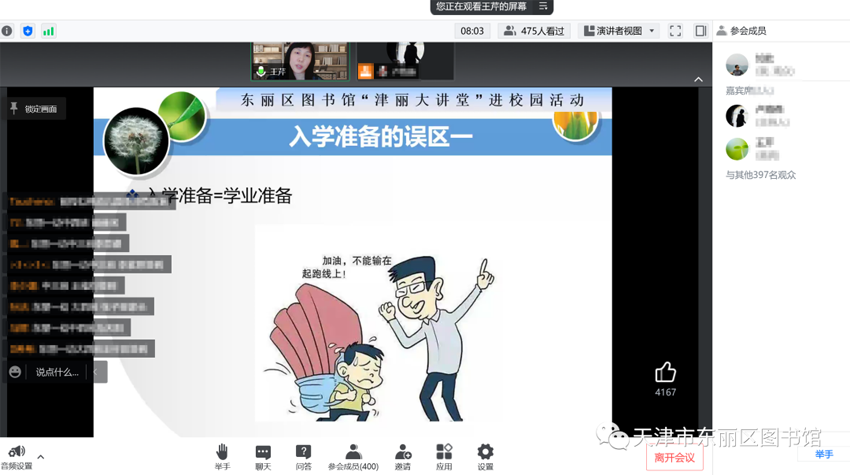为了贯彻教育部印发的《关于大力推进幼儿园与小学科学衔接的指导意见》,全面推进幼儿园和小学实施入学准备和入学适应教育,减缓衔接坡度,帮助儿童顺利实现从幼儿园到小学的过渡。东丽区图书馆联合东丽一幼,想家长之所想,急家长之所急,办家长之所需,以强烈的社会责任为己任,以行动积极推进小学与幼儿园科学有效衔接,4月1日通过线上直播讲座的方式举行“家庭入学准备的科学与从容--助力孩子自信启航”幼小衔接公益讲座活动。