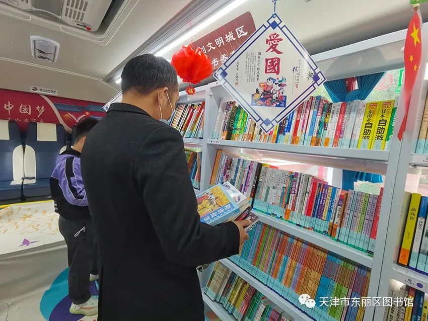 “全民阅读·书香东丽”——“东丽区图书馆流动服务车把最好的全民阅读服务带到群众的身边!欢迎广大读者朋友来流动服务车!