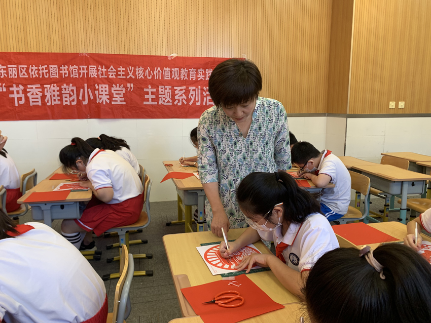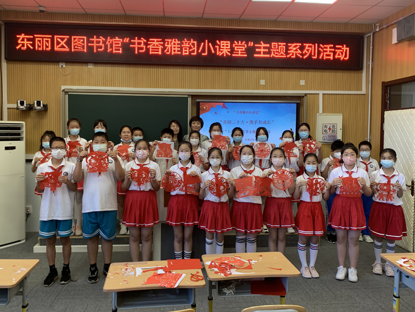 为缅怀党的光辉历程,继承党的光荣传统,增强未成年人对中国共产党的拥护和热爱,6月24日,东丽区图书馆“书香雅韵”小课堂——七一建党节主题剪纸活动走进东羽小学,带领同学们体验剪纸工艺。