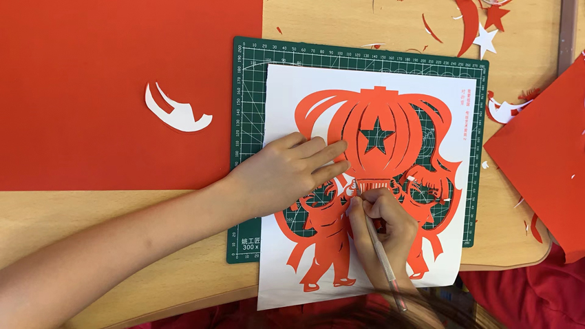 首先,图书馆志愿者为到场的同学们介绍党相关知识,通过现场互动的形式,引导同学了解我党起源及光荣事迹。随后,志愿者给同学们发放了材料包,带领同学们体验剪纸工艺。同学们用刻刀、剪刀完成的一幅幅生动形象的剪纸作品,唤起了一段段红色记忆,也寄托了同学们对党和国家真挚的祝福。