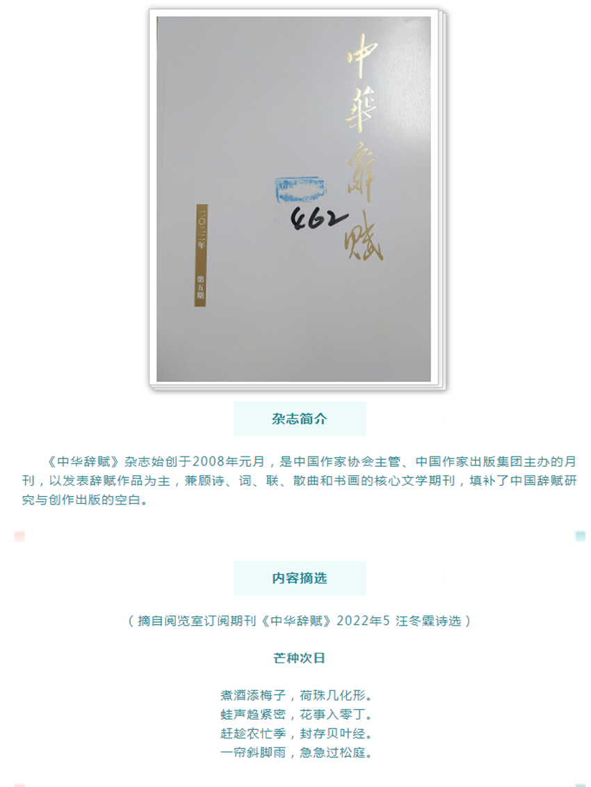 品读·精品期刊推介第六期——仲夏苦夜短 开轩纳微凉