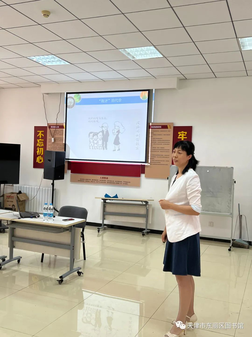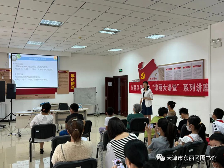 为了更好的让教育改善家庭、家庭助力教育、亲子共同成长,7月13日上午东丽区图书馆特于暑假期间在金钟街赵沽里社区党群服务中心2楼会议室,邀请天津师范大学心理学部博士王芹老师为家长及同学们开展以“培养孩子有持久力的学习动力——内驱力的唤醒与保持”为主题的“津丽大讲堂”文化公益讲座。