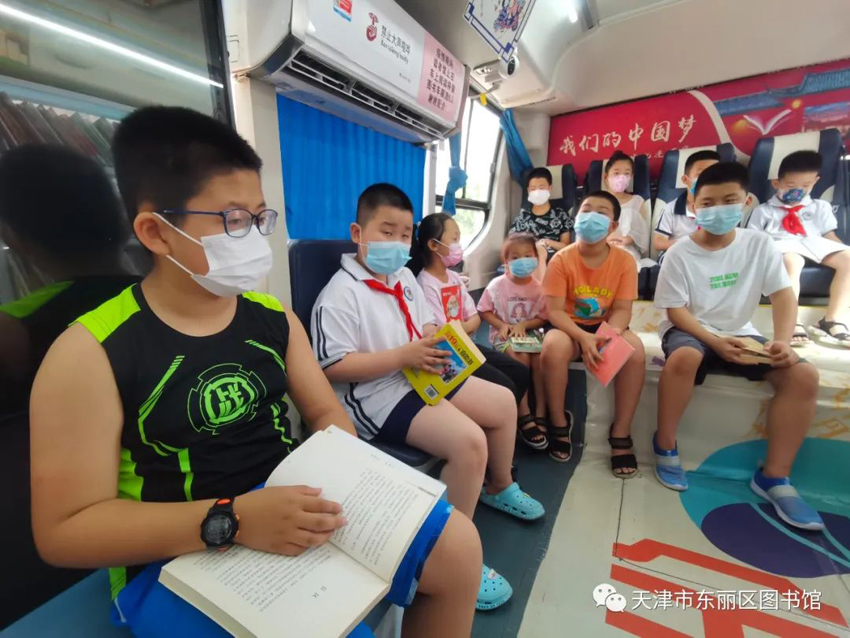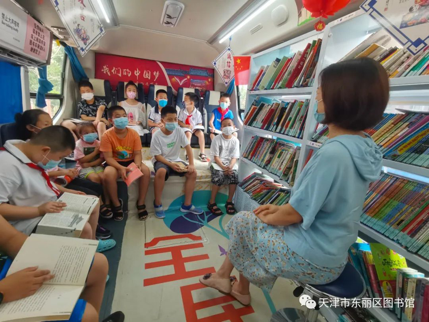近日,东丽区图书馆流动服务车来到新立街道丽昕社区,开展主题为“未来的生活”的暑期特别活动。